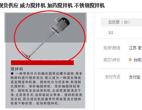 公司的攪拌機圖片又被同行盜用了,今天在阿里巴巴1688首頁隨意用了幾個關(guān)鍵詞“不銹鋼攪拌機”、“化工攪拌機”、“液體攪拌機”、“加藥攪拌機”居然搜出了不少盜用的圖片,看到這種情況不介意是假的,畢竟是自己的知識產(chǎn)權(quán),況且“瘌痢頭的兒子是自己的好”,從產(chǎn)品的研發(fā)、設(shè)計、生產(chǎn)、拍攝到PS修整,沒一項都是自己心血的結(jié)晶,就這樣不打招呼的被人“借走”怎么想也不是滋味,但遇到這種情況更多的是無奈。